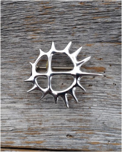 Die Mitternachtssonne ist im Land der Samen ein Naturphänomen von grösster Bedeutung. Sie ist auf fast allen bewahrten Schamanentrommeln, direkt oder indirekt, abgebildet. Die Sonne ist oft bis ins nicht wiederzuerkennende stilisiert abgebildet. Das Vorbild für unsere Sonne stammt von einer Schamanen Trommel aus der Åsele- Lappmark Die Trommel ist seit 1693 bekannt, kann aber auch älter sein. Ernst Manker gir uttrykk for at sola ikke ble ansett som en gudefigur men som den u-personifiserte urkraften som er skaperen selv. Die Sonne der Trommel ist von uns designmässig verändert. Sie ist seit dem Anfang der 80-iger Jahre unsere registrierte Firmenmarke. Kilde: Ernst Manker, Die lappische Zaubertrommel. Bind 1, Runebom nr. 65