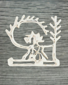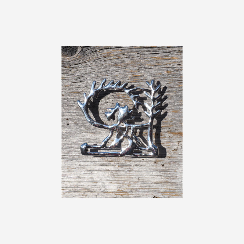 Für viele unserer Schmuckstücke haben wir die Motive auf alten samischen Schamanentrommeln gefunden. Eine Schamanentrommel war aus Holz und Rentierhaut hergestellt. Auf dem Trommelfell waren, mit Hilfe von rotem Planzensaft, Figuren gemalt. Ein kleiner Zeiger aus Rentierhorn wurde auf das Trommelfell gelegt und mit einem Hammer aus Rentierhorn wurde die Trommel geschlagen. Die Vibration ließ den Zeiger auf dem Trommelfell herumhüpfen. Aus der Kombination der einzelnen Figuren , die der Zeiger auf seinem Wege berührte, meinte der Schamane die Zukunft und das Jagdglück voraussagen zu können. Die Zeichnungen auf den Trommeln waren nach einem bestimmten Muster aufgebaut, ein Kosmos mit Bildern von verschiedenen Götterfiguren, der Sonne, einem Jäger auf Ski und dem Schamanen mit seiner Trommel in der linken- und dem Hammer in der rechten Hand. Tiere wie Bären, Elche, Biber, Fische, Vögel und Rentiere in allen Varianten, sind auf fast jeder Trommel abgebildet.