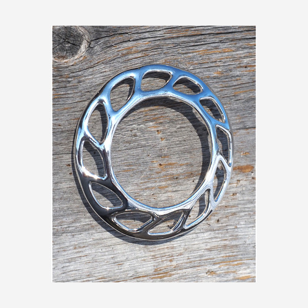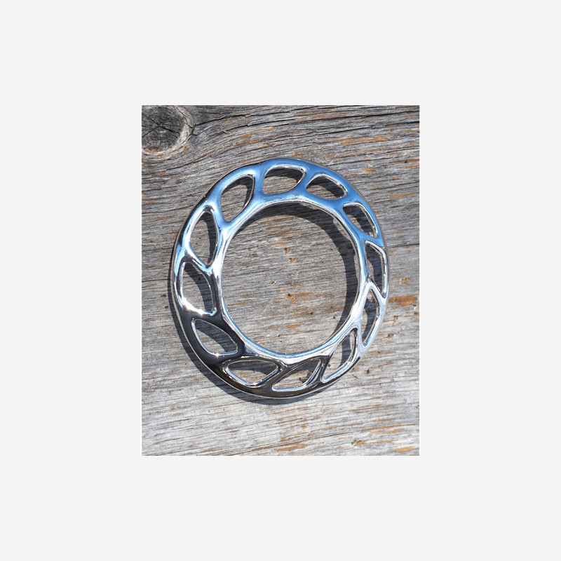 Die Ware ist stark verkleinert auf dem Bild im Verhältnis zu anderen Waren, bitte finden Sie die Größe in:  "ARTIKELDETAILS" - : Die Samenfrauen befestigten große runde Gürtelschmuckstücke aus Metall oder Rentierhorn an der Seite ihrer breiten Ledergürtel. Unter diese Gürtelschmuckstücke wurden Messer, Löffeltasche, Scherenfutteral, Nadelhaus und Geldbörse gehängt. Wenn die Samenfrauen an den Rentierzügen teilnahmen, kamen noch diverse Schlüssel für die Speicher und Schatzkisten dazu. Die Vorbilder einiger unserer Gürtelschmuckstücke, die bei uns zu Broschen und Anhängern verarbeitet werden, stammen aus dem Mittelalter. Sie wurden vor einigen Jahrzehnten bei Ausgrabungen von samischen Opferplätzen in Schweden gefunden. Die Forscher vermuten, daß die Motive der Schmuckstücke Sonnenräder darstellen, und daher bekamen die Schmuckstücke ihren Namen Sonnenrad. Der Name ist modern und kam erst mit der Etablierung der Silberschmieden in Finnmark auf. Auch Modelle aus Rentierhorn haben als Vorbilder gedient, diese waren jedoch nicht so groß wie die Gürtelschmuckstücke aus Metall. Alle Sonnenräder mußten stark verkleinert werden, damit sie als Schmuck für unsere heutige Kundschaft verwendet werden können.