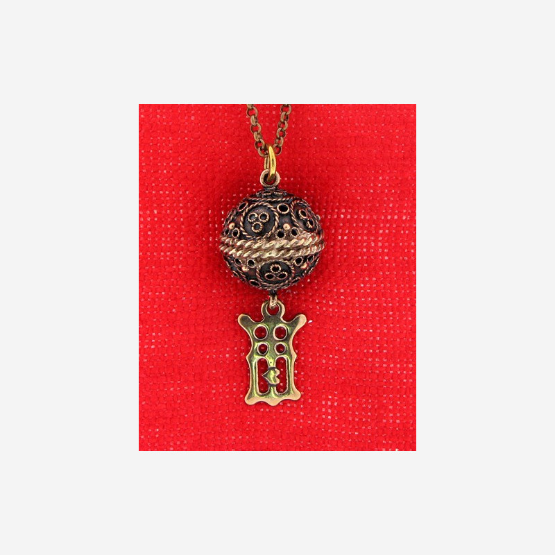 Alle Bronzeschmuckstücke sind durch einen Speziallack geschützt. . Im Mittelalter, bis in den Barock, gebrauchte man Filigrankugeln als Trachtenschmuck in Skandinavien. Im 18. Jahrhundert stellte man kleinere Kugeln her, die aus glatten Halbkugeln und Filigranteilen zusammengesetzt wurden. Gleichzeitig fing man mit der Fertigung ganz glatter Kugeln an, an die rundherum kleine Ringe gelötet waren. In diese Ringe wurden wiederum kleine lose Silberringe montiert, die vermutlich nur zur Verzierung gedacht waren, sie hatten keine magische oder praktische Bedeutung. Die Samen befestigten die Kugeln an den Trachtenkragen. Als dieser Brauch am Ende des 19. Jahrhunderts aufhörte, wurden die Kugeln über die samischen Kinderwiegen, Komsen, gehängt und bekamen daher ihren heutigen Namen: Komsekugeln. Die Samen hofften, daß die Babys vor den Unterirdischen schützen würden. Es herrschte der Aberglaube, daß die Unterirdischen ihre eigenen Kinder mit denen der Samen vertauschen wollten. Man glaubte, daß die Unterirdischen sich den Babys nicht nähern könnten, wenn eine beschützende Komsekugel über der Kinderwiege hinge. Heute werden oft in samischen Gebieten als Taufgeschenk überreicht.