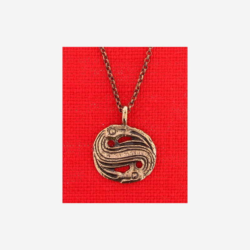 S-formed Anhänger aus Bronze Aus der Merovingerzeit , 7. Jahrh. n. Chr. Gefunden in einem Grab in Hårvik, Lødingen, Nordland