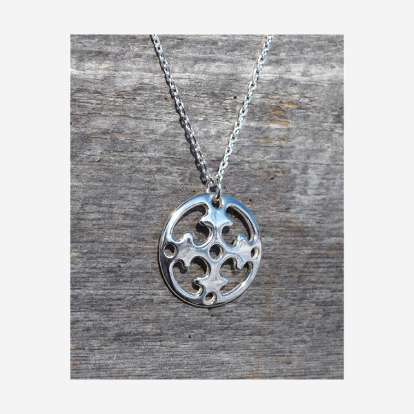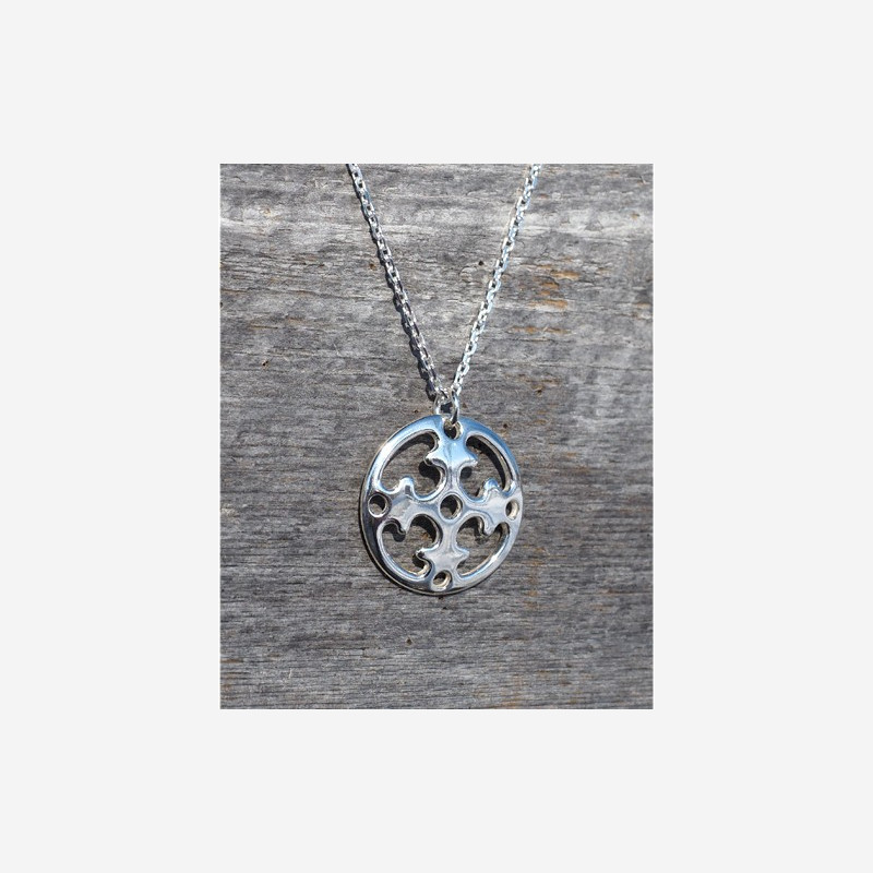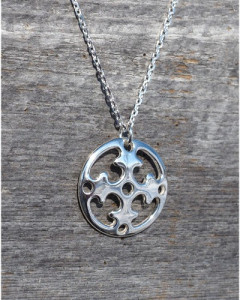 Die Samenfrauen befestigten große runde Gürtelschmuckstücke aus Metall oder Rentierhorn an der Seite ihrer breiten Ledergürtel. Unter diese Gürtelschmuckstücke wurden Messer, Löffeltasche, Scherenfutteral, Nadelhaus und Geldbörse gehängt. Wenn die Samenfrauen an den Rentierzügen teilnahmen, kamen noch diverse Schlüssel für die Speicher und Schatzkisten dazu. Die Vorbilder einiger unserer Gürtelschmuckstücke, die bei uns zu Broschen und Anhängern verarbeitet werden, stammen aus dem Mittelalter. Sie wurden vor einigen Jahrzehnten bei Ausgrabungen von samischen Opferplätzen in Schweden gefunden. Die Forscher vermuten, daß die Motive der Schmuckstücke Sonnenräder darstellen, und daher bekamen die Schmuckstücke ihren Namen Sonnenrad. Der Name ist modern und kam erst mit der Etablierung der Silberschmieden in Finnmark auf. Auch Modelle aus Rentierhorn haben als Vorbilder gedient, diese waren jedoch nicht so groß wie die Gürtelschmuckstücke aus Metall. Alle Sonnenräder mußten stark verkleinert werden, damit sie als Schmuck für unsere heutige Kundschaft verwendet werden können.