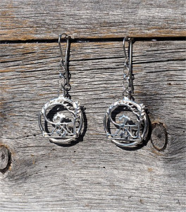 Für viele unserer Schmuckstücke haben wir die Motive auf alten samischen Schamanentrommeln gefunden. Eine Schamanentrommel war aus Holz und Rentierhaut hergestellt. Auf dem Trommelfell waren, mit Hilfe von rotem Planzensaft, Figuren gemalt. Ein kleiner Zeiger aus Rentierhorn wurde auf das Trommelfell gelegt und mit einem Hammer aus Rentierhorn wurde die Trommel geschlagen. Die Vibration ließ den Zeiger auf dem Trommelfell herumhüpfen. Aus der Kombination der einzelnen Figuren , die der Zeiger auf seinem Wege berührte, meinte der Schamane die Zukunft und das Jagdglück voraussagen zu können. Die Zeichnungen auf den Trommeln waren nach einem bestimmten Muster aufgebaut, ein Kosmos mit Bildern von verschiedenen Götterfiguren, der Sonne, einem Jäger auf Ski und dem Schamanen mit seiner Trommel in der linken- und dem Hammer in der rechten Hand. Tiere wie Bären, Elche, Biber, Fische, Vögel und Rentiere in allen Varianten, sind auf fast jeder Trommel abgebildet. Interessant ist die häufige Abbildung der Schellente. Die Samen hängten im Frühjahr spezielle Brutkästen für diese Enten auf und entnahmen jedem Kasten nach und nach einige Eier. Die Eier waren sehr wichtig in einer Jahreszeit, in der es sonst an frischen Nahrungsmitteln fehlte.