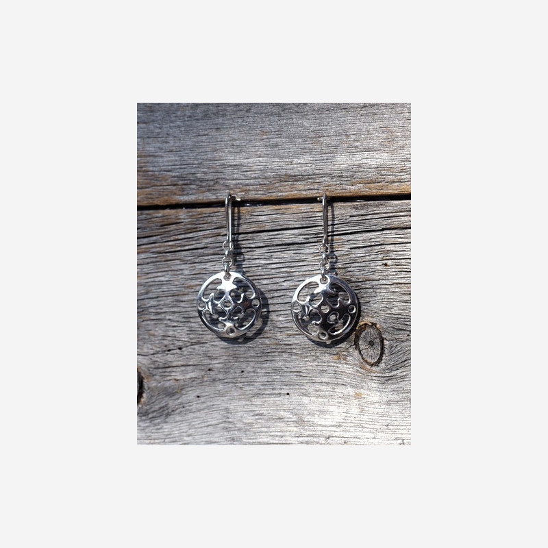 Die Samenfrauen befestigten große runde Gürtelschmuckstücke aus Metall oder Rentierhorn an der Seite ihrer breiten Ledergürtel. Unter diese Gürtelschmuckstücke wurden Messer, Löffeltasche, Scherenfutteral, Nadelhaus und Geldbörse gehängt. Wenn die Samenfrauen an den Rentierzügen teilnahmen, kamen noch diverse Schlüssel für die Speicher und Schatzkisten dazu. Die Vorbilder einiger unserer Gürtelschmuckstücke, die bei uns zu Broschen und Anhängern verarbeitet werden, stammen aus dem Mittelalter. Sie wurden vor einigen Jahrzehnten bei Ausgrabungen von samischen Opferplätzen in Schweden gefunden. Die Forscher vermuten, daß die Motive der Schmuckstücke Sonnenräder darstellen, und daher bekamen die Schmuckstücke ihren Namen Sonnenrad. Der Name ist modern und kam erst mit der Etablierung der Silberschmieden in Finnmark auf. Auch Modelle aus Rentierhorn haben als Vorbilder gedient, diese waren jedoch nicht so groß wie die Gürtelschmuckstücke aus Metall. Alle Sonnenräder mußten stark verkleinert werden, damit sie als Schmuck für unsere heutige Kundschaft verwendet werden können.
