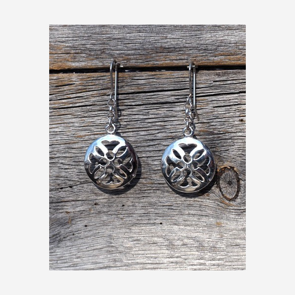 Die Samenfrauen befestigten große runde Gürtelschmuckstücke aus Metall oder Rentierhorn an der Seite ihrer breiten Ledergürtel. Unter diese Gürtelschmuckstücke wurden Messer, Löffeltasche, Scherenfutteral, Nadelhaus und Geldbörse gehängt. Wenn die Samenfrauen an den Rentierzügen teilnahmen, kamen noch diverse Schlüssel für die Speicher und Schatzkisten dazu. Die Vorbilder einiger unserer Gürtelschmuckstücke, die bei uns zu Broschen und Anhängern verarbeitet werden, stammen aus dem Mittelalter. Sie wurden vor einigen Jahrzehnten bei Ausgrabungen von samischen Opferplätzen in Schweden gefunden. Die Forscher vermuten, daß die Motive der Schmuckstücke Sonnenräder darstellen, und daher bekamen die Schmuckstücke ihren Namen Sonnenrad. Der Name ist modern und kam erst mit der Etablierung der Silberschmieden in Finnmark auf. Auch Modelle aus Rentierhorn haben als Vorbilder gedient, diese waren jedoch nicht so groß wie die Gürtelschmuckstücke aus Metall. Alle Sonnenräder mußten stark verkleinert werden, damit sie als Schmuck für unsere heutige Kundschaft verwendet werden können.