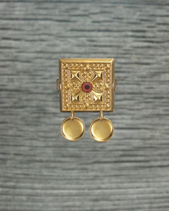 Das Trachtensilber kann auch ganz in Silberfarbe geliefert werden. Traditionell wurde immer die Gold - Silber Farbkombination von den Sami vorgezogen, erst in den letzten Jahren hat man angefangen auch ganz Silberfarbene Trachtenschmuckstücke zu tragen. Kann nur mit roten Steinen geliefert werden, keine anderen Farben
