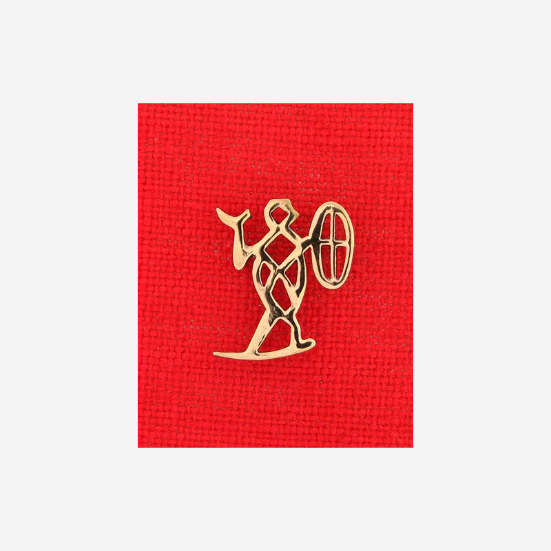 All bronze jewelry is protected by a special lacquer. A great number of our jewellery represent motives from ancient sami shaman drums , called "runebomme" in Norwegian. A "runebomme" was made of tree and reindeer skin. The shaman, noaidi, painted magic drawings on the drumhead. When using the "runebomme" the noaidi placed a small piece of reindeerhorn in the middle of the drumhead. It began to move around on the drumhead when the drum was beaten. From the combination of the different drawings, which the piece of horn touched on its way around the drumhead, the noaidi could tell the future and predict hunting luck. The drawings on the drumhead were painted in a certain system, a cosmos containing goddesses, the sun, a hunter on ski and the noaidi with his drum. On nearly every drum one can find drawings of animals like bears, mooses, beavers, fishes, birds and many different reindeers. The golden-eyed duck was often represented on "runebomme" s. The sami people made big nesting boxes for the ducks. In springtime they took eggs from these nesting boxes. The eggs were important in a season when there was otherwise very little fresh food to get. A nice detail of the broach of our golden-eyed duck are the legs which are movable.