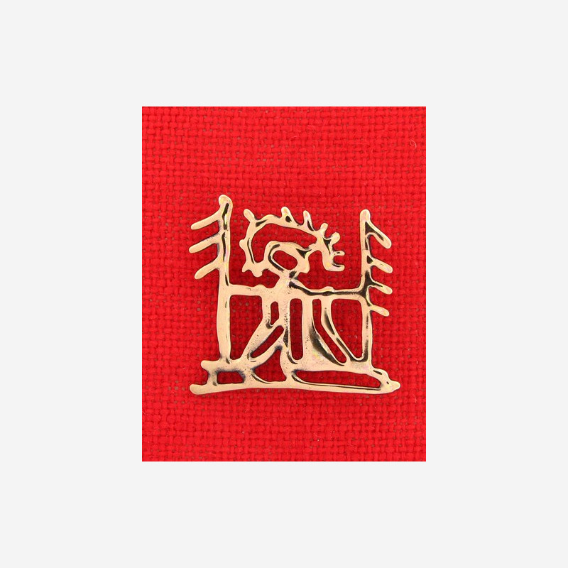 A great number of our jewellery represent motives from ancient sami shaman drums , called "runebomme" in Norwegian. A "runebomme" was made of tree and reindeer skin. The shaman, noaidi, painted magic drawings on the drumhead. When using the "runebomme" the noaidi placed a small piece of reindeerhorn in the middle of the drumhead. It began to move around on the drumhead when the drum was beaten. From the combination of the different drawings, which the piece of horn touched on its way around the drumhead, the noaidi could tell the future and predict hunting luck. The drawings on the drumhead were painted in a certain system, a cosmos containing goddesses, the sun, a hunter on ski and the noaidi with his drum. On nearly every drum one can find drawings of animals like bears, mooses, beavers, fishes, birds and many different reindeers. The golden-eyed duck was often represented on "runebomme" s. The sami people made big nesting boxes for the ducks. In springtime they took eggs from these nesting boxes. The eggs were important in a season when there was otherwise very little fresh food to get. A nice detail of the broach of our golden-eyed duck are the legs which are movable.