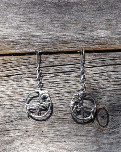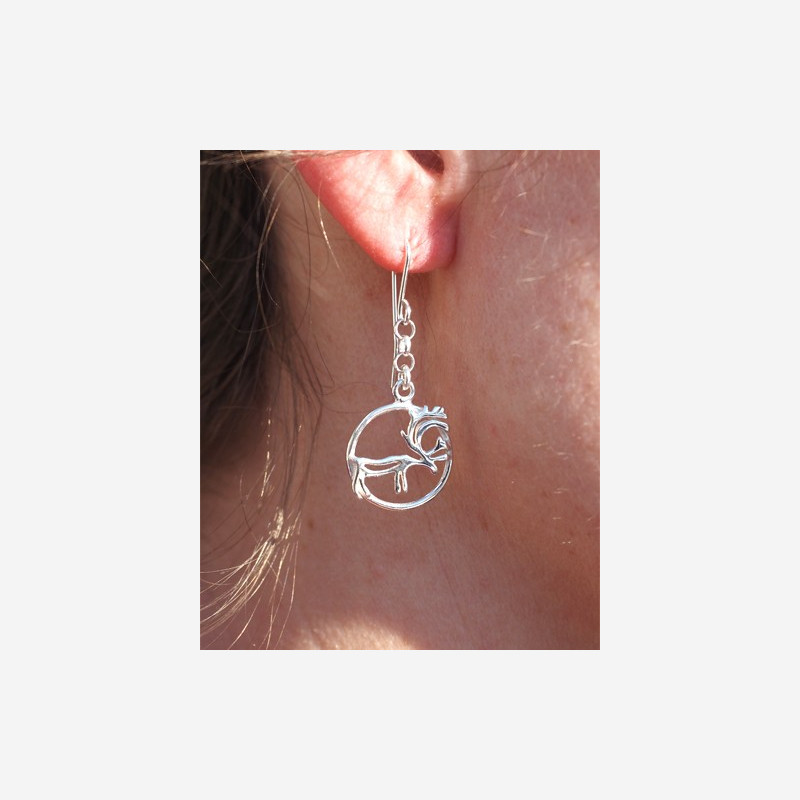 A great number of our jewellery represent motives from ancient sami shaman drums , called "runebomme" in Norwegian. A "runebomme" was made of tree and reindeer skin. The shaman, noaidi, painted magic drawings on the drumhead. When using the "runebomme" the noaidi placed a small piece of reindeerhorn in the middle of the drumhead. It began to move around on the drumhead when the drum was beaten. From the combination of the different drawings, which the piece of horn touched on its way around the drumhead, the noaidi could tell the future and predict hunting luck. The drawings on the drumhead were painted in a certain system, a cosmos containing goddesses, the sun, a hunter on ski and the noaidi with his drum. On nearly every drum one can find drawings of animals like bears, mooses, beavers, fishes, birds and many different reindeers.