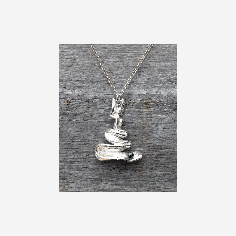 We use dried crowberry roots for designing this special silverjewelry. The black pearls are made of hematit (bloodstone) which is just as black in colour as the crowberries in nature.