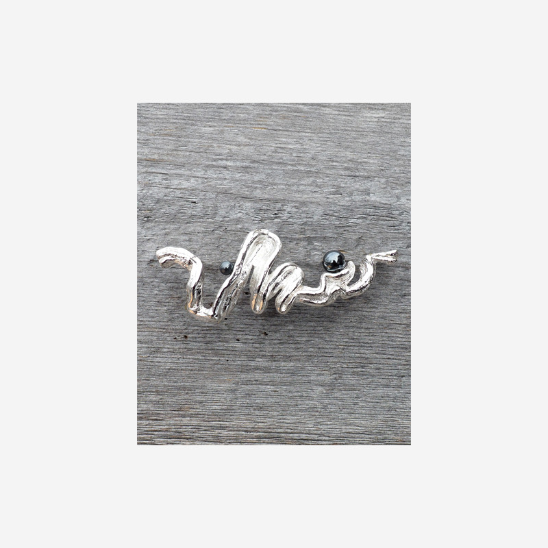 We use dried crowberry roots for designing this special silverjewelry. The black pearls are made of hematit (bloodstone) which is just as black in colour as the crowberries in nature.