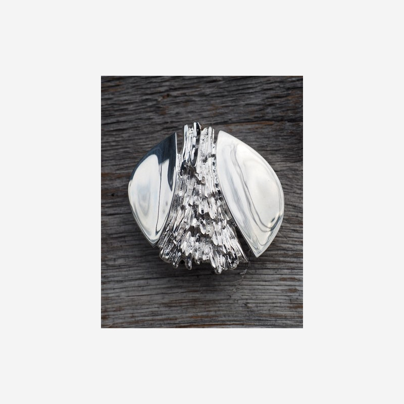 Waterfall, Modern jewelry inspired by motives from our North Norwegian nature. Massive silver jewelry with handmade diamond-cut surface