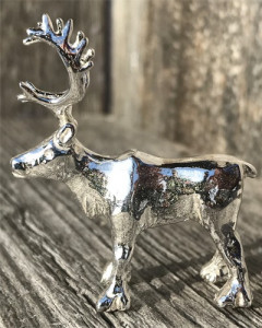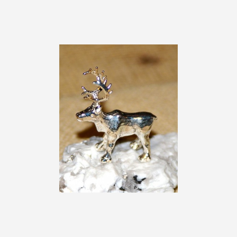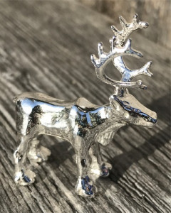 This little silver reindeer figure is nearly massive and weighs as much as 26 grams. The stone on which it stands is only for exhibition use and is not delivered together with the reindeer. It is easy to glue the reindeer on a rock with a 2- component glue. The reindeer is shiny and nice in "real life", on the image it seems to be dark. This is due to reflections, we were unable to avoind under photographing. Sorry.