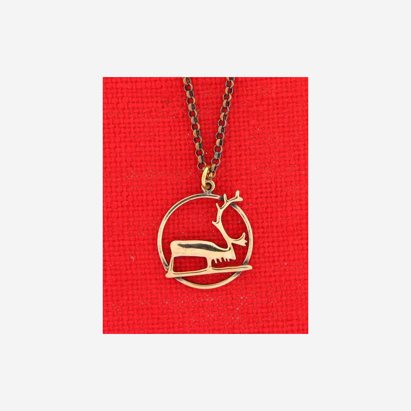 All bronze jewelry is protected by a special lacquer. A great number of our jewellery represent motives from ancient sami shaman drums , called "runebomme" in Norwegian. A "runebomme" was made of tree and reindeer skin. The shaman, noaidi, painted magic drawings on the drumhead. When using the "runebomme" the noaidi placed a small piece of reindeerhorn in the middle of the drumhead. It began to move around on the drumhead when the drum was beaten. From the combination of the different drawings, which the piece of horn touched on its way around the drumhead, the noaidi could tell the future and predict hunting luck. The drawings on the drumhead were painted in a certain system, a cosmos containing goddesses, the sun, a hunter on ski and the noaidi with his drum. On nearly every drum one can find drawings of animals like bears, mooses, beavers, fishes, birds and many different reindeers. The golden-eyed duck was often represented on "runebomme" s. The sami people made big nesting boxes for the ducks. In springtime they took eggs from these nesting boxes. The eggs were important in a season when there was otherwise very little fresh food to get. A nice detail of the broach of our golden-eyed duck are the legs which are movable.