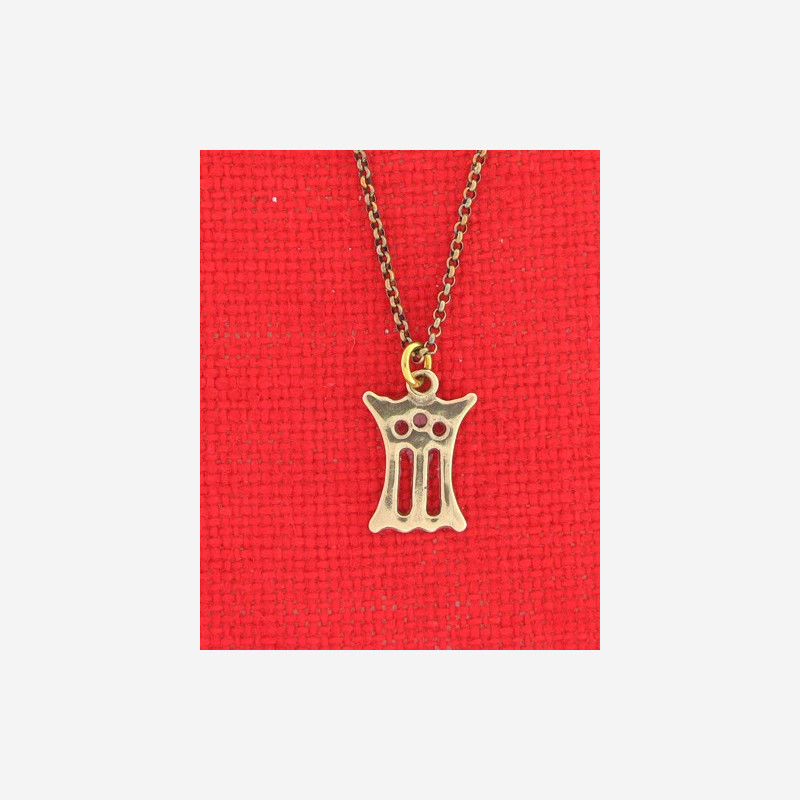 All bronze jewelry is protected by a special lacquer. A "malje" was an ancient pilgrimsign from the Middle Ages. During the time when Norway still was Catholic, people made pilgrimages to monasteries all over Europe. At the monasteries they got a special pilgrim sign as proof of their successful journey. Some pilgrim signs were formed as a Gothic "M" with a crown on the top, a symbol of Virgin Mary as the Queen of Heaven. There are other Gothic letters like our "A"and other signs of which nobody knows the meaning any more. The loose ring on the front of the malje was probably decoration and had no practical or symbolic meaning. In Southern Norway the ring on the backside was used for attaching silver chains to the National costume. Thereby this kind of jewellery was named malje. The Sami attached the maljes on the collar of the sami national costume, or they mounted them on their skin belts. Nearly all the maljer were gilded at those times. The superstition of the sami people surely connected some magical powers to the malje, long after the original religious intention had been forgotten. Today a malje is a decorative jewellery without religious meaning.