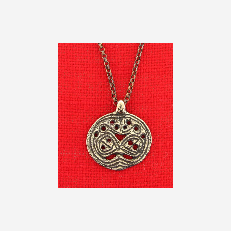 All bronze jewelry is protected by a special lacquer. Bronze pendant Finnish import from Viking period, 10th. Century A.D. From a grave in Storsletta, Lenvik, Troms