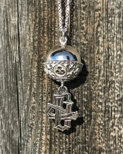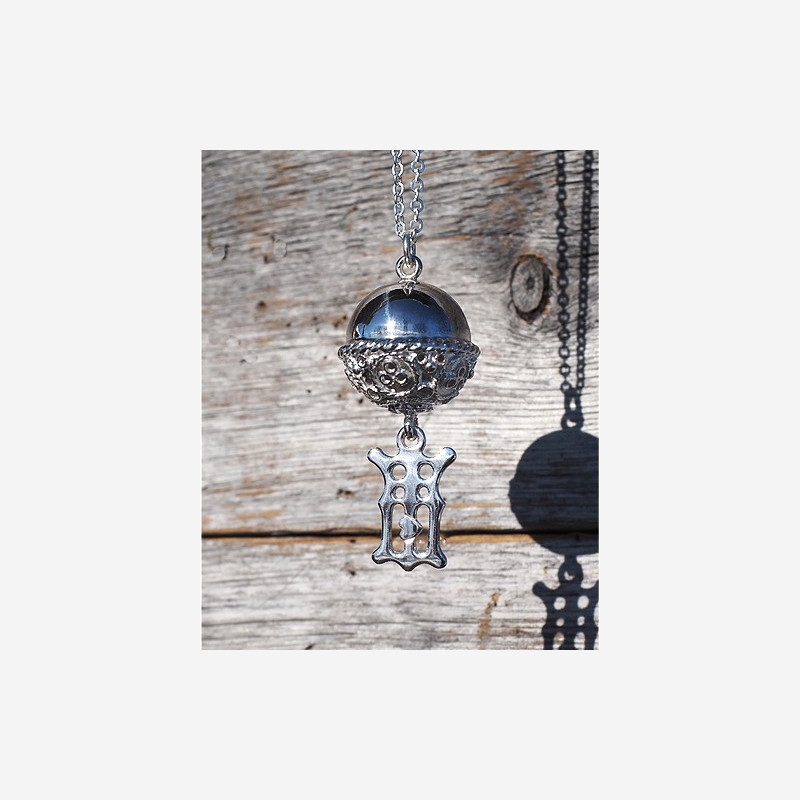 During the Middle Ages filigree silverballs were used all over Scandinavia as jewellery for the national costume. You can choose the length of the chain in the drop-down menu.