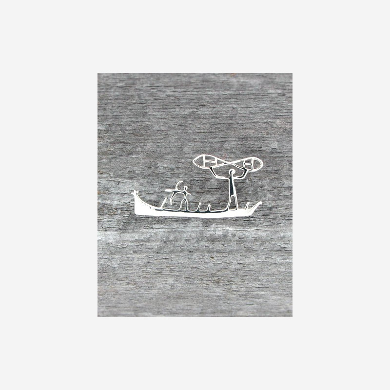 Rockcarving of a boat with hunters. Stoneage, ca 4200 - 3500 B. C. Motives fra Jiebmaluokta, Alta, Finnmark