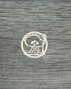 A great number of our jewellery represent motives from ancient sami shaman drums , called "runebomme" in Norwegian. A "runebomme" was made of tree and reindeer skin. The shaman, noaidi, painted magic drawings on the drumhead. When using the "runebomme" the noaidi placed a small piece of reindeerhorn in the middle of the drumhead. It began to move around on the drumhead when the drum was beaten. From the combination of the different drawings, which the piece of horn touched on its way around the drumhead, the noaidi could tell the future and predict hunting luck. The drawings on the drumhead were painted in a certain system, a cosmos containing goddesses, the sun, a hunter on ski and the noaidi with his drum. On nearly every drum one can find drawings of animals like bears, mooses, beavers, fishes, birds and many different reindeers.