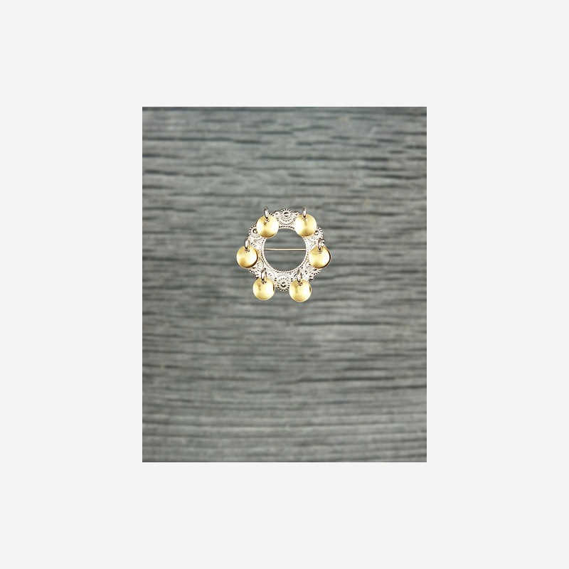 A "Sølje" is a traditional brooch for women, which keeps the sami kofte (national costume) in front of the neck together. The traditional jewelry can also be delivered entirely in silver color.Traditionally, gold - silver combination has always been the prefered color of jewelry by the Sami people, only in recent years, people have begun to ask for all silver colored traditional jewelry.