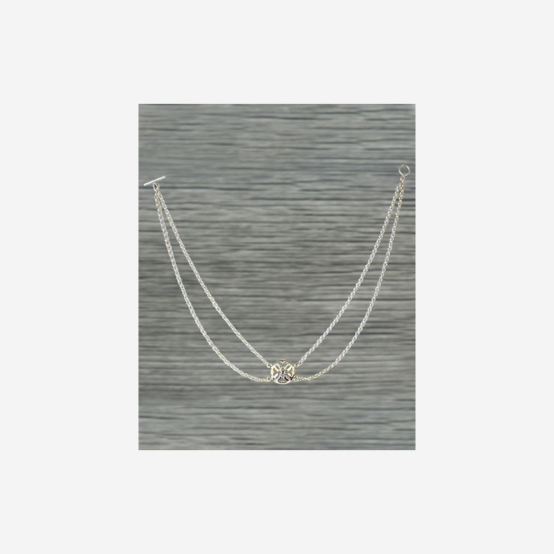 Varen er sterk forminsket på bildet, vennligst finn frem til størrelsen under "Produktdetaljer" Tidligere brukte samekvinnene store runde beltesmykker av metall eller reinhorn på siden av beltene . Under beltesmykkene hengte de kniven, skjeposen, saksehus, nålehus og pengepung. Mens de var på vår- eller høstflytting festet de også nøkler for stabburene og skattekistene i beltesmykket. Enkelte av våre smykker med motiver fra belteringer stammer fra middelalderen. De er funnet under utgravninger av samiske offerplasser i Sverige. Forskerne mener at det antakelig dreier seg om solsymboler, og derfra fikk belteringene navnet: solhjul. Dette er et moderne navn som først dukket opp med etableringen av sølvsmiene i Finnmark. De fleste av våre solhjul har reinhorn-modeller som forbilde. Noen beltesmykker var store, opp til 15 cm i diameter. Våre smykker med solhjulmotiver er blitt forminsket .