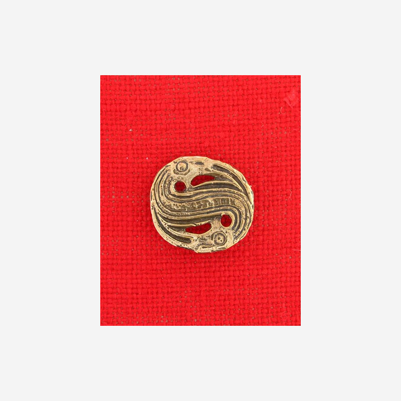 S-formet spenne av bronse Fra merovingertiden, 7. årh. e. Kr. Fra en kvinnegrav på Hårvik, Lødingen, Nordland