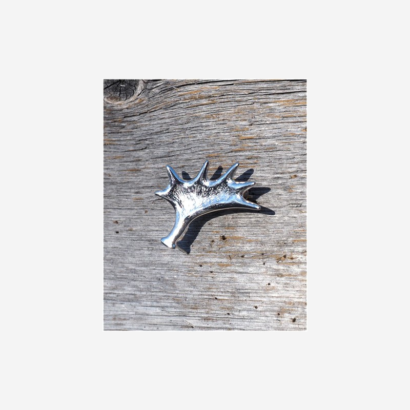Brosje formet etter et elghorn vi fant i skogen i Tana.